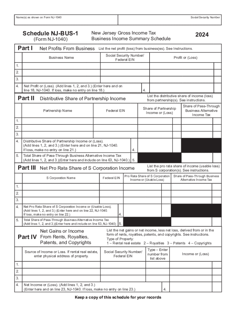 Get the free Form Nj 1040 Schedule Nj Bus 1Fill Out Printable PDF
