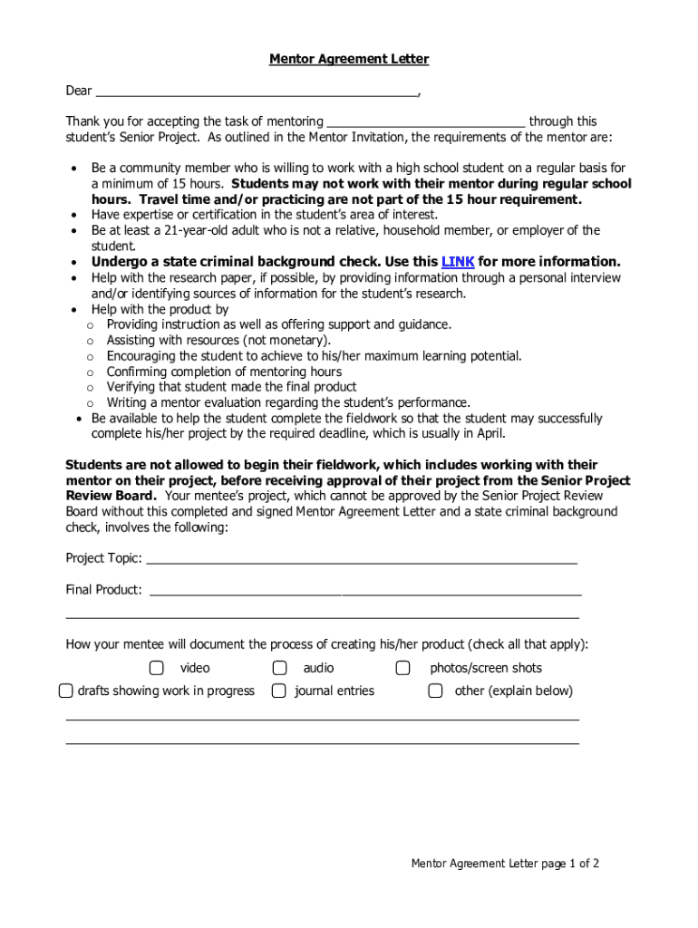 Get the free Senior Project Mentor Guide & Agreement Form