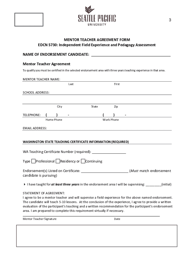 Completing the mentor teacher agreement form involves several sections that need careful attention. The first part is obtaining the mentor information, which requires entering essential details such as the mentor's name, credentials, and contact information. This information is crucial as it formalizes the relationship and provides the mentee a point of contact throughout the mentorship journey.