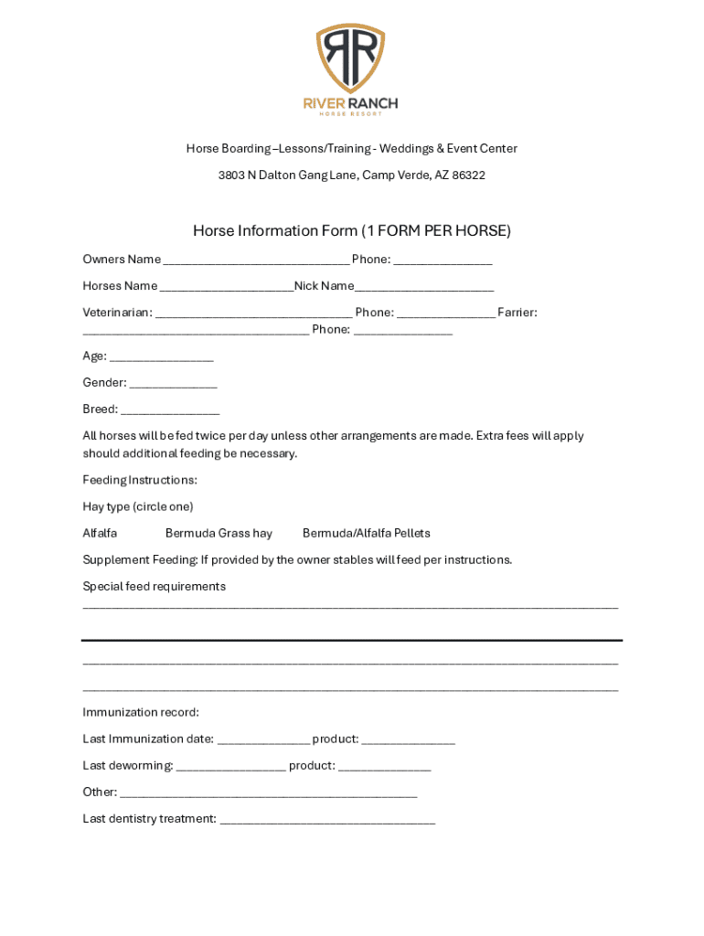 The River-Ranch form is a specialized document designed for the effective management of ranch operations. This form streamlines the process of organizing and maintaining essential records, allowing ranch owners and managers to concentrate on the operational aspects of their business. The significance of the River-Ranch form lies in its capacity to enhance efficiency, ensuring that critical information is organized, accessible, and easily manageable.