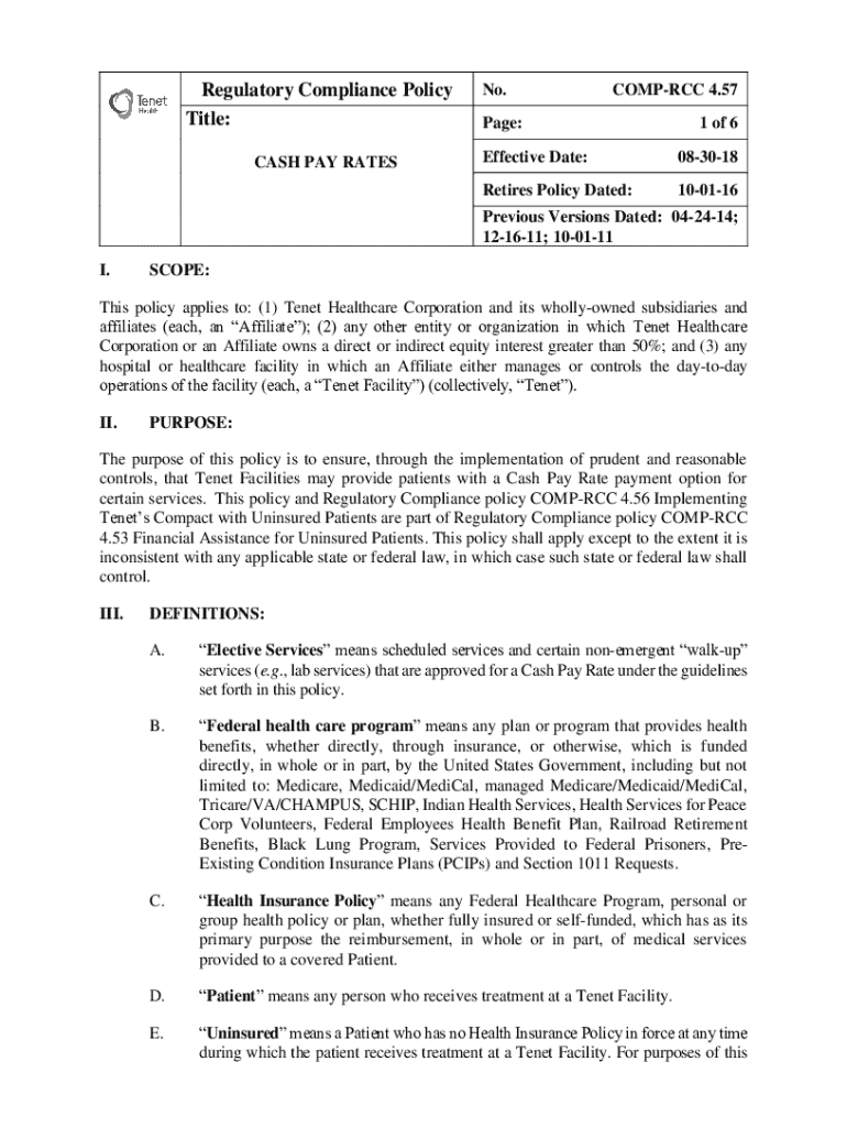 Get the free COMPRCC 457 Cash Pay Rates