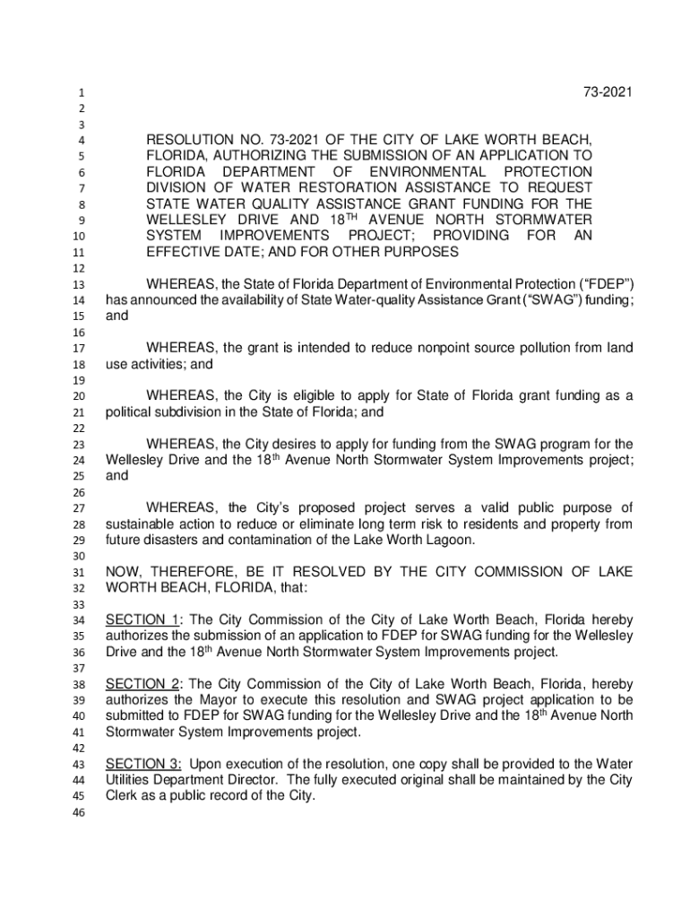 Get the free 73-2021 OF THE CITY OF LAKE WORTH BEACH,