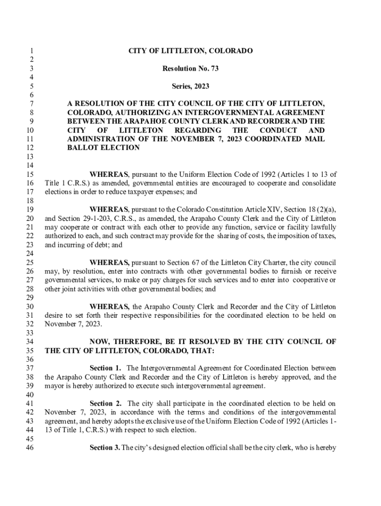 Get the free COLORADO, AUTHORIZING AN INTERGOVERNMENTAL AGREEMENT