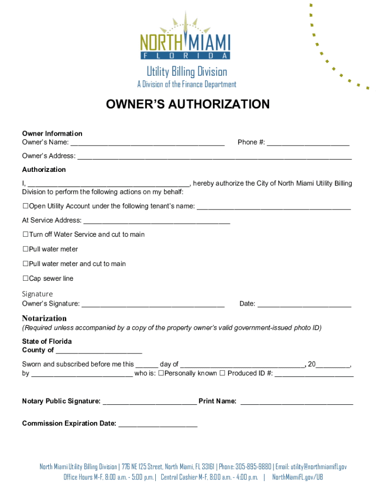 Get the free Utility Billing Division OWNER'S AUTHORIZATION