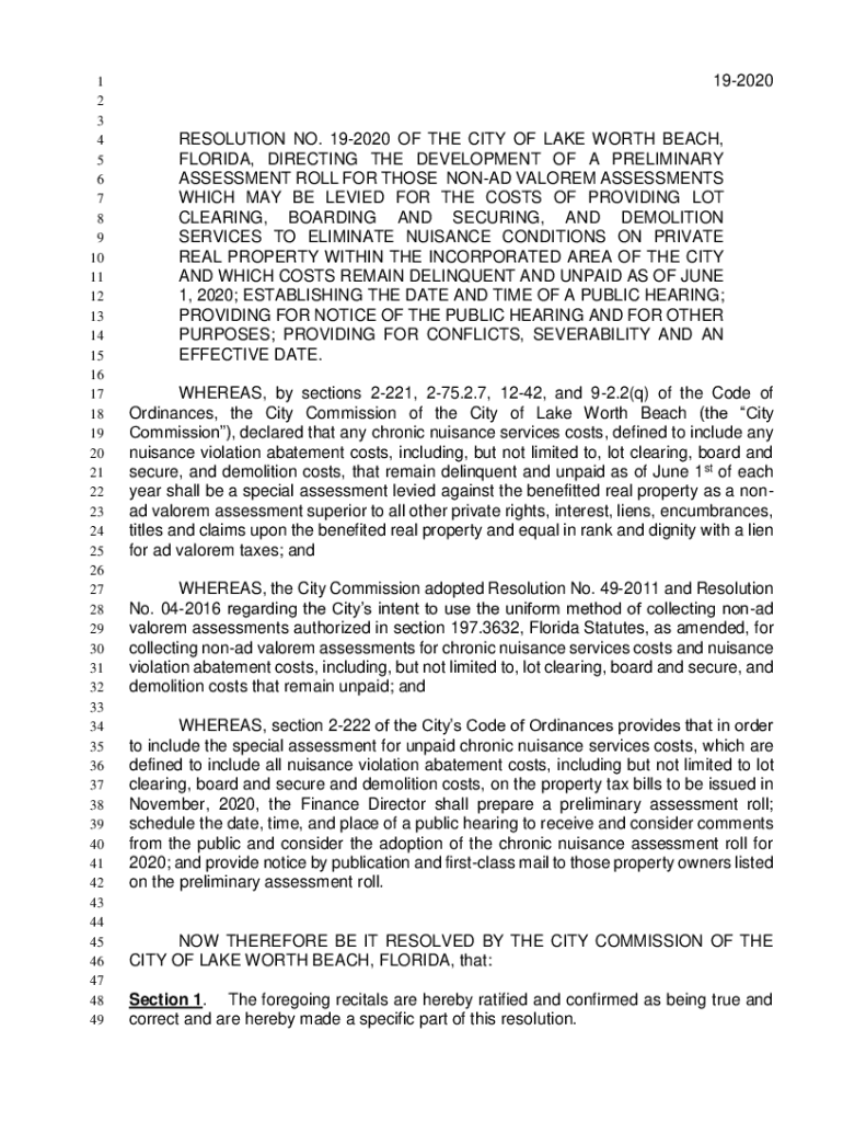 Get the free 19-2020 OF THE CITY OF LAKE WORTH BEACH,