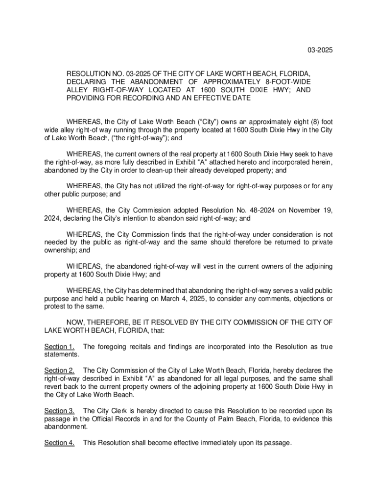 Get the free 03-2025 OF THE CITY OF LAKE WORTH BEACH, FLORIDA,