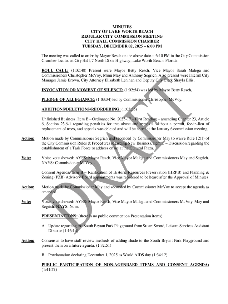 Get the free ROLL CALL: (1:02:40) Present were Mayor Betty Resch, Vice Mayor Sarah Malega and