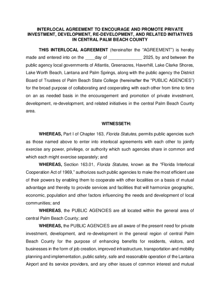 Get the free A) an Interlocal Agreement with the Town of Lake Park ( ...