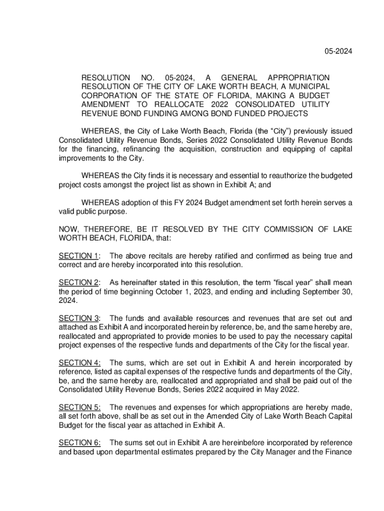052024RESOLUTION NO. 052024, A GENERAL APPROPRIATION RESOLUTION OF THE CITY OF LAKE WORTH BEACH, A MUNICIPAL CORPORATION OF THE STATE OF FLORIDA, MAKING A BUDGET AMENDMENT TO REALLOCATE 2022 CONSOLIDATED