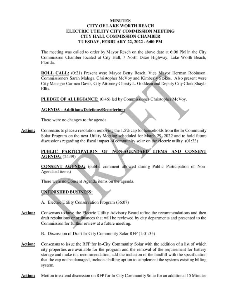 Get the free ROLL CALL: (0:21) Present were Mayor Betty Resch, Vice Mayor Herman Robinson,