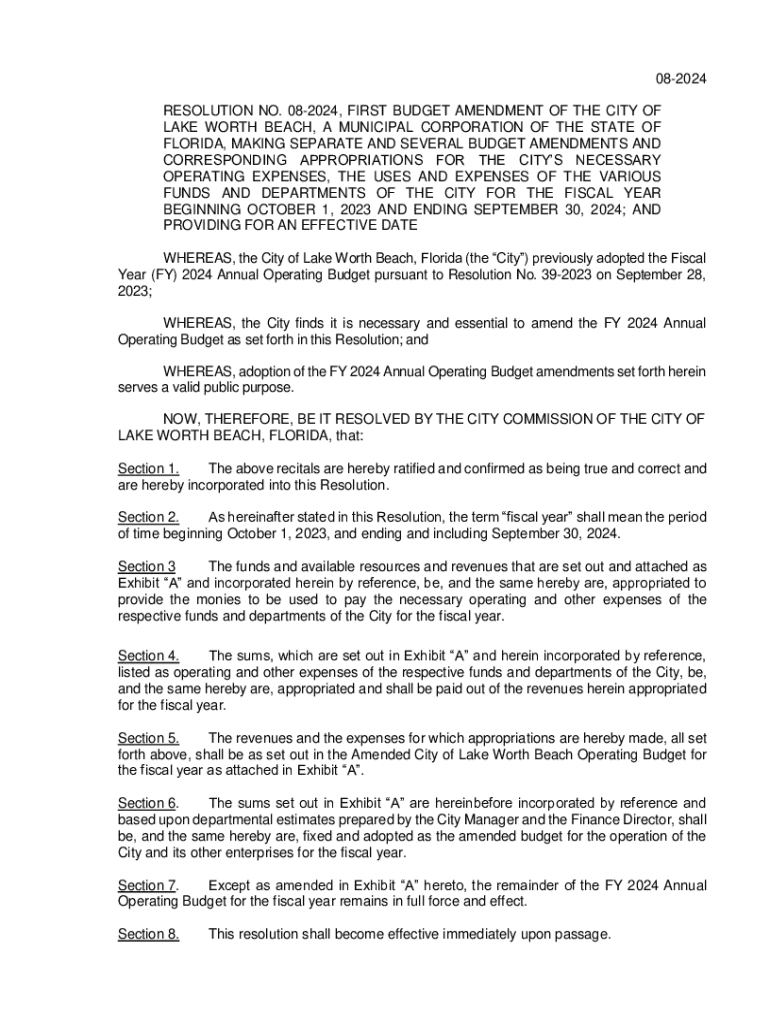 Get the free 08-2024, FIRST BUDGET AMENDMENT OF THE CITY OF