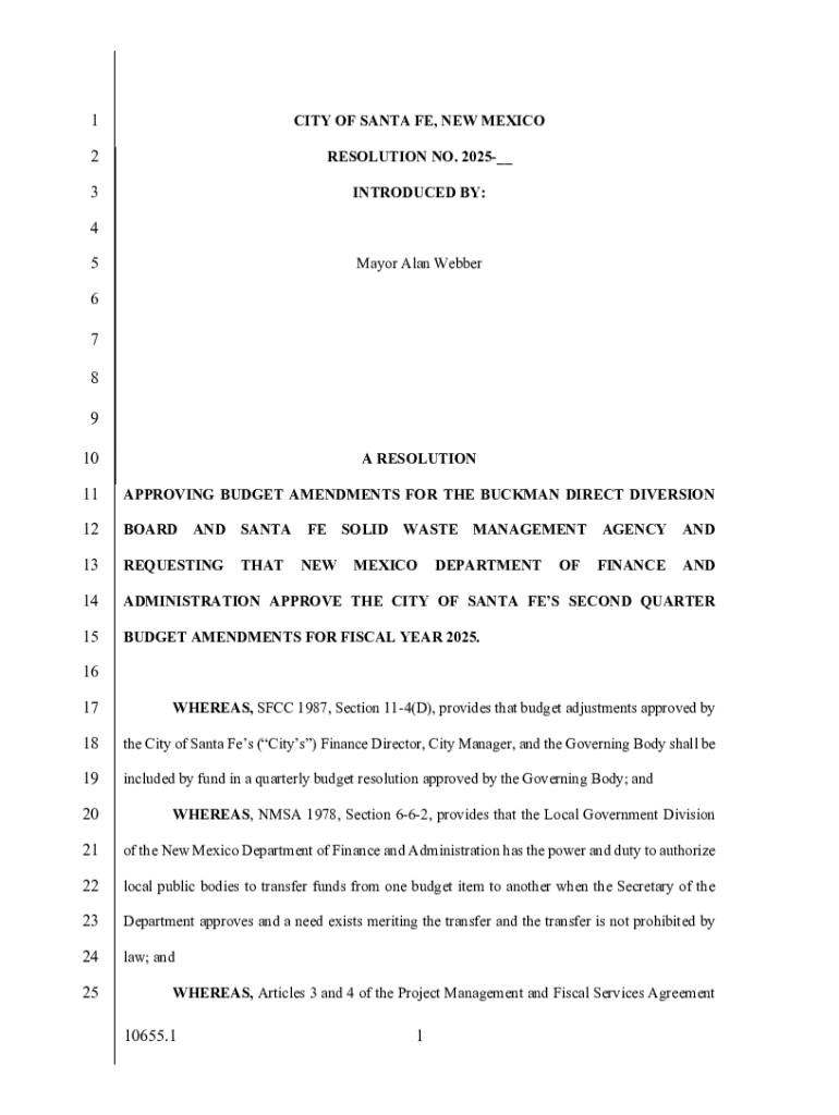 Get the free Mayor Alan Webber A RESOLUTION APPROVING ...