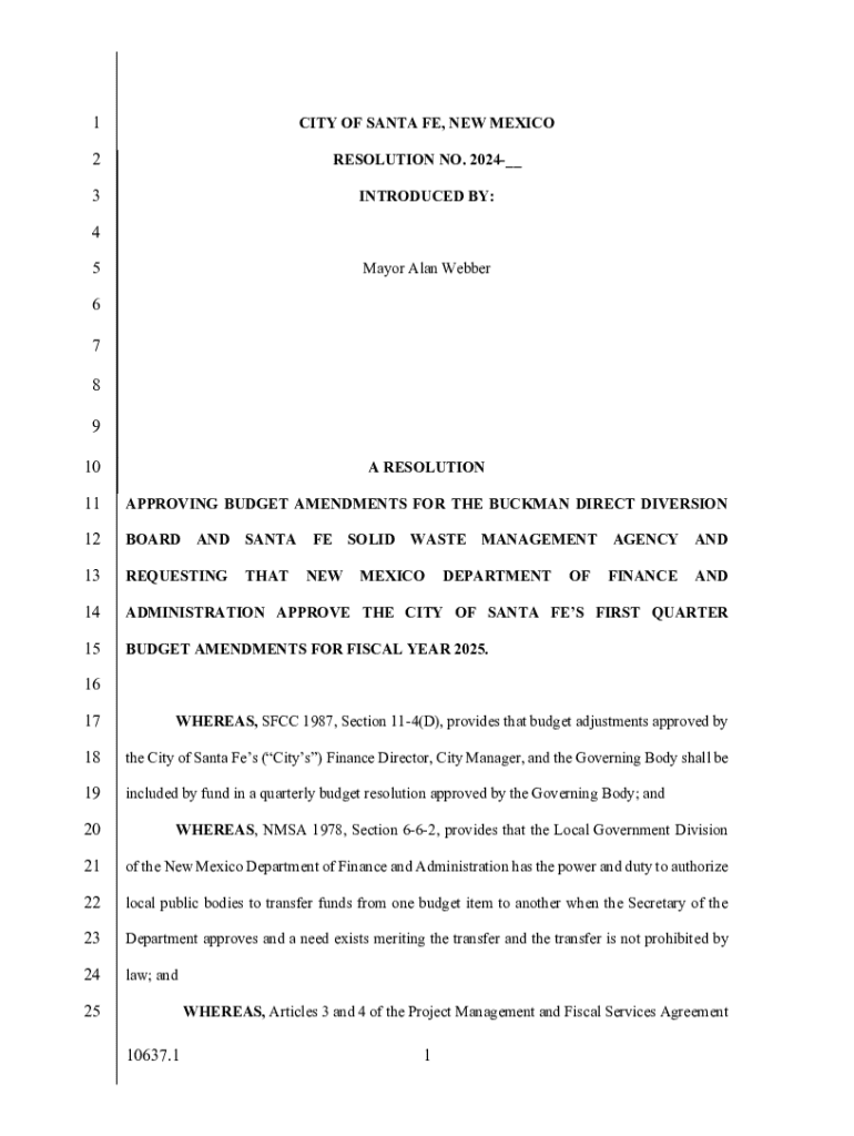 Get the free Mayor Alan Webber A RESOLUTION REQUESTING ...