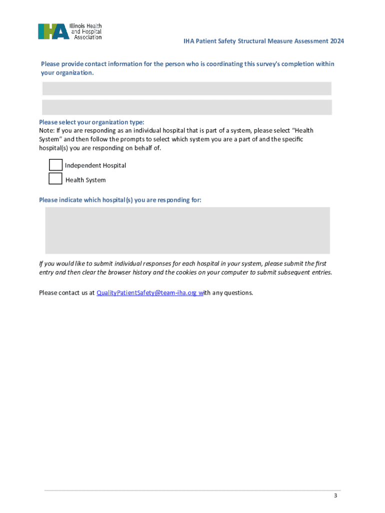 The IHA Patient Safety Structural Form is a critical document designed to enhance patient safety within healthcare settings. By systematically collecting data on safety practices, this form serves as a foundational tool for healthcare providers aiming to improve the overall quality of patient care. It enables organizations to identify potential risks, implement necessary changes, and promote a culture of safety. Understanding its significance helps staff engage proactively with patient safety initiatives.