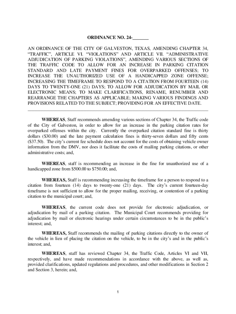 Get the free AN ORDINANCE OF THE CITY OF GALVESTON, TEXAS, ...