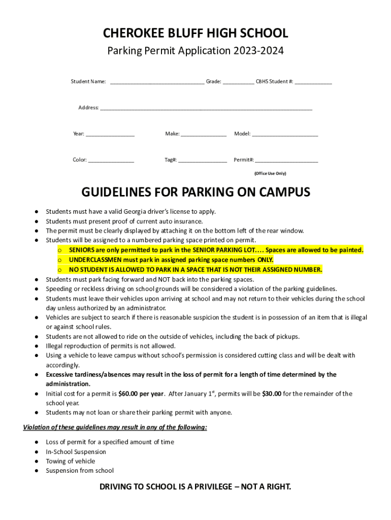 Get the free Parking Permit - Cherokee Bluff High School
