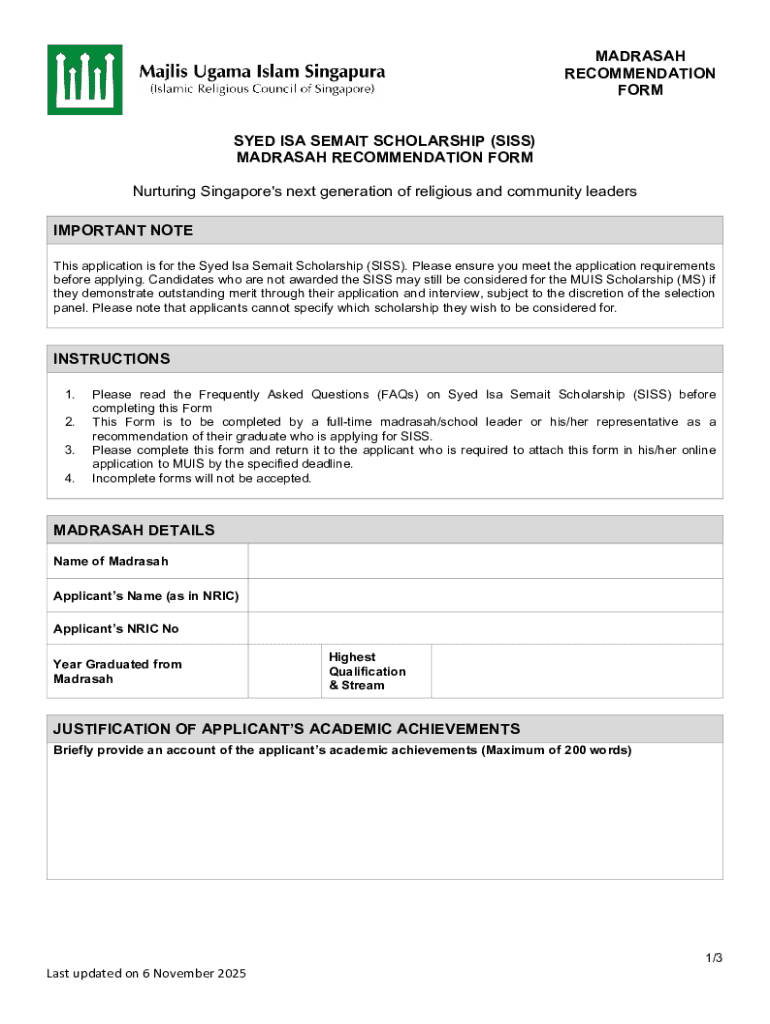 Get the free NOMINATION FORM A SYED ISA SEMAIT SCHOLARSHIP ...