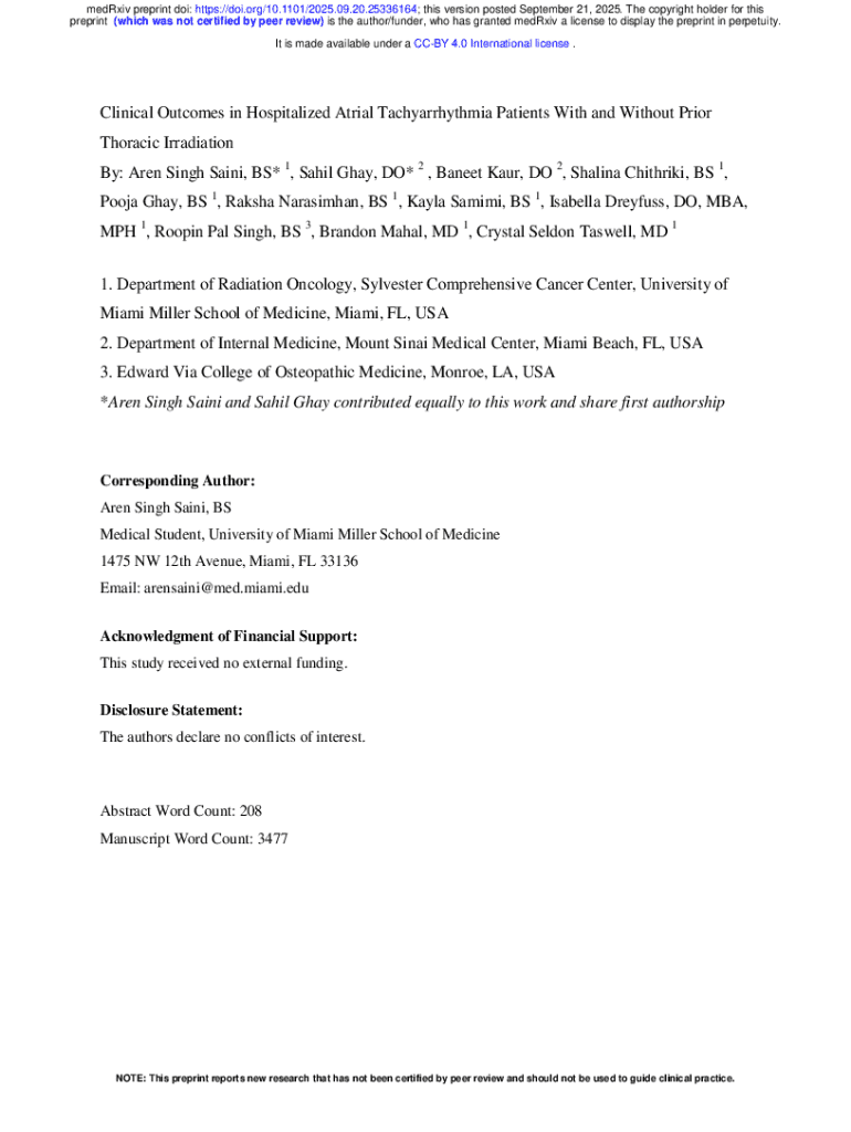 Get the free Clinical Outcomes in Hospitalized Atrial Tachyarrhythmia Patients With and Without P...