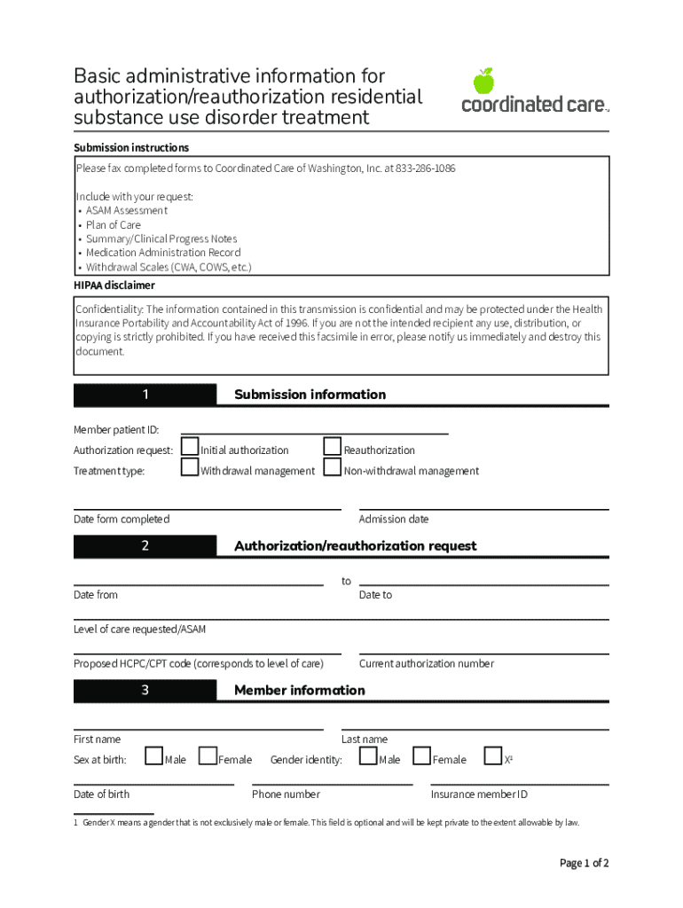 Get the free Basic administrative information for authorization/reauthorization residential subst...