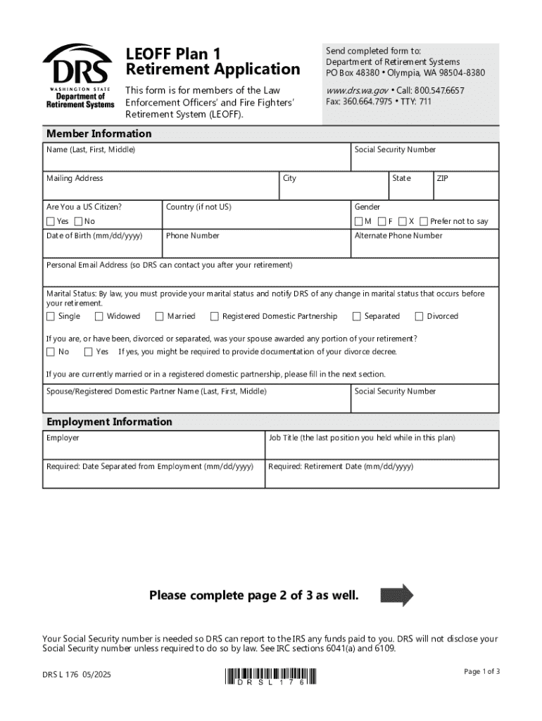 Get the free LEOFF Plan 1 Retirement Application *DRSL176*