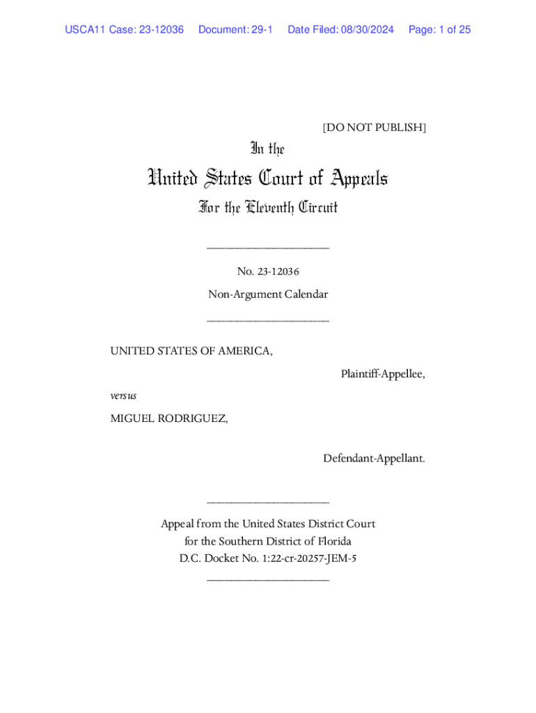 Obtain relevant documentation regarding the USA v. Miguel Rodriguez case.