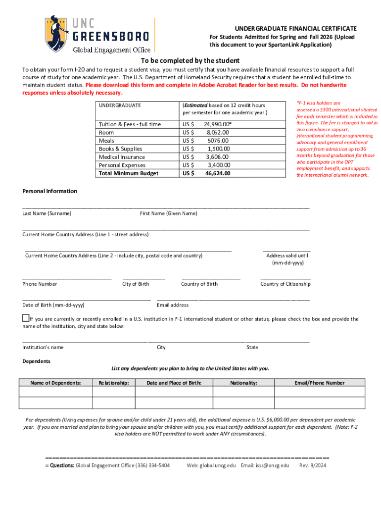 Different student groups encounter unique challenges that can affect their submissions of the undergraduate financial certificate form. For example, international students might face additional documentation requirements to demonstrate financial support as part of their visa application processes. These documents must clearly indicate the ability to cover tuition and living expenses while studying abroad.