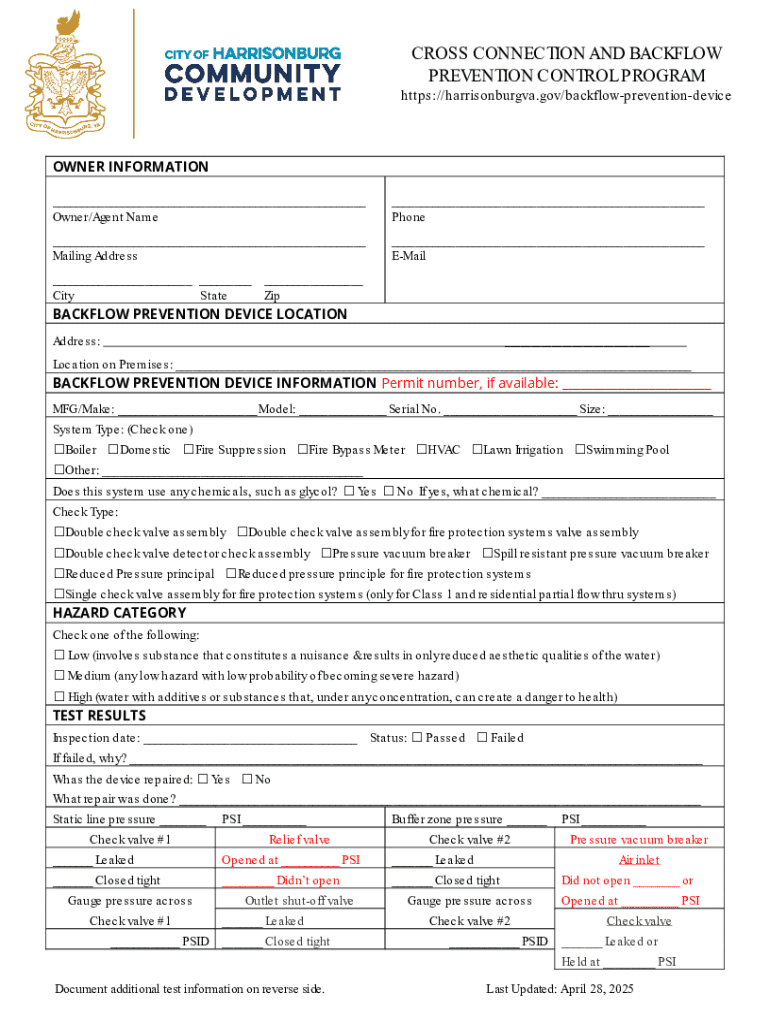 Get the free Backflow Prevention and Cross Connection Control ...