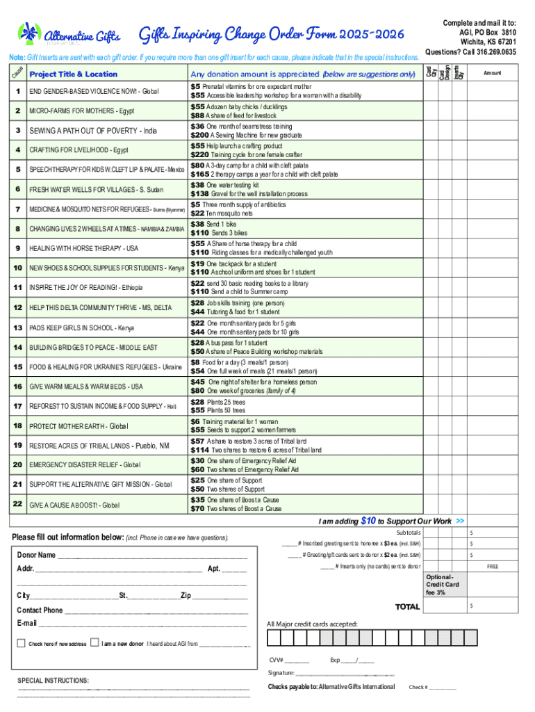 Get the free Gifts Inspiring Change Order Form 2025-2026