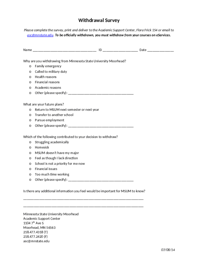 The Checklist for Withdrawing from all Courses Mid-Semester is a writable document which can be completed and signed for specific needs. Then, it is furnished to the relevant addressee to provide certain information of any kinds. The completion and signing is able or with a trusted tool like PDFfiller. These applications help to complete any PDF or Word file without printing them out. It also lets you edit its appearance according to your requirements and put a legal electronic signature. Upon finishing, the user ought to send the Checklist for Withdrawing from all Courses Mid-Semester to the recipient or several ones by email and even fax. PDFfiller offers a feature and options that make your Word form printable. It offers a number of settings for printing out. No matter, how you distribute a form - in hard copy or by email - it will always look professional and firm. In order not to create a new editable template from scratch all the time, turn the original form as a template. Later, you will have a customizable sample.
