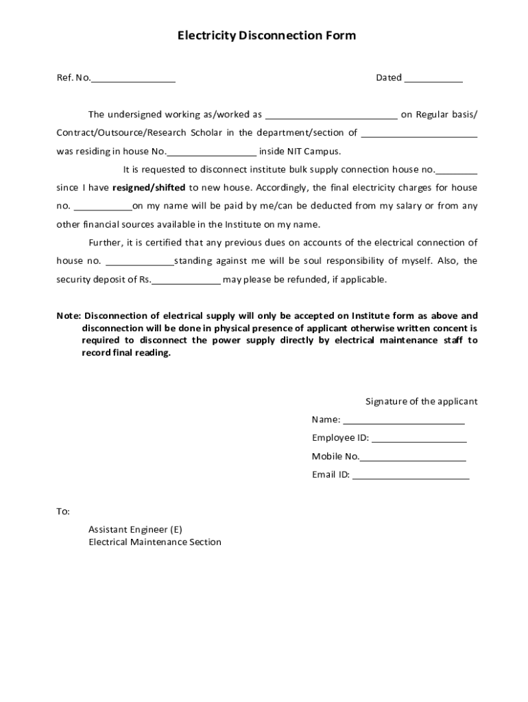 Understanding the purpose behind the electricity disconnection form is essential for preventing delays or complications. This documentation is not just a formality; it has legal implications for both the customer and the service provider.