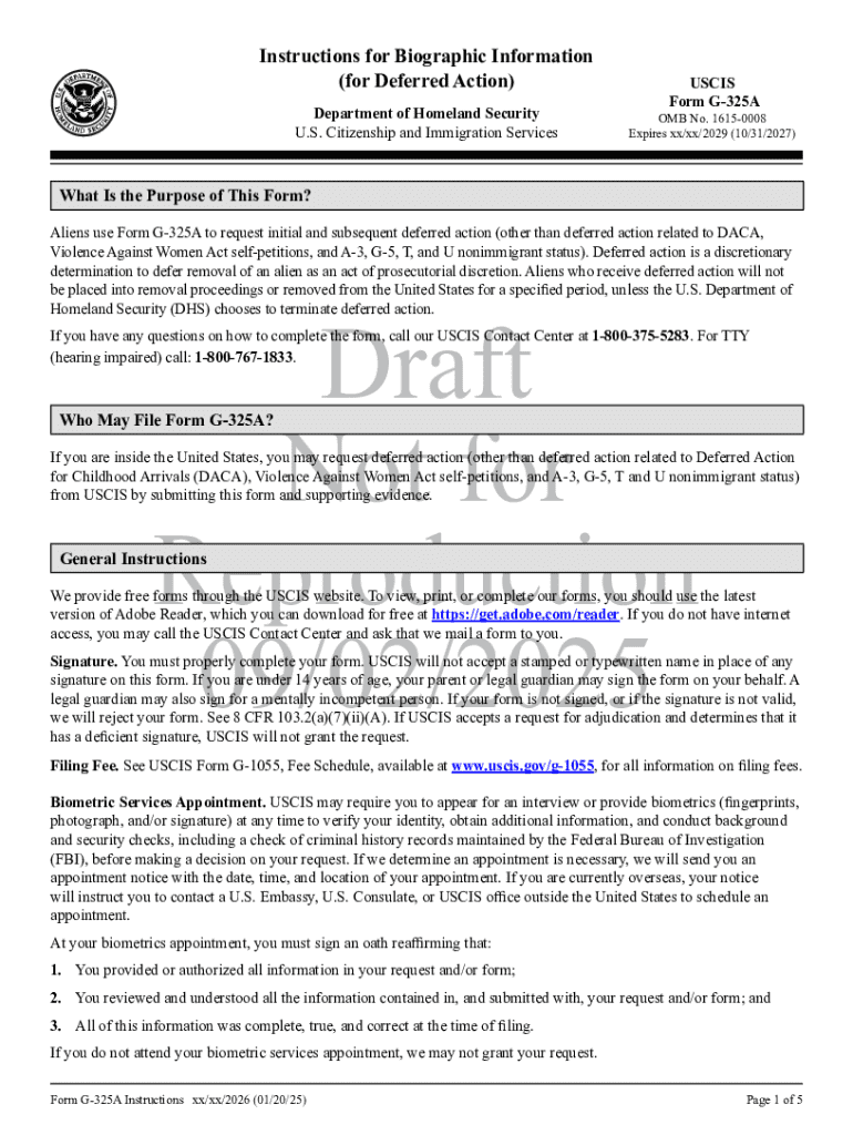 Get the free Form G-325A, Instructions for Biographic Information (for ...
