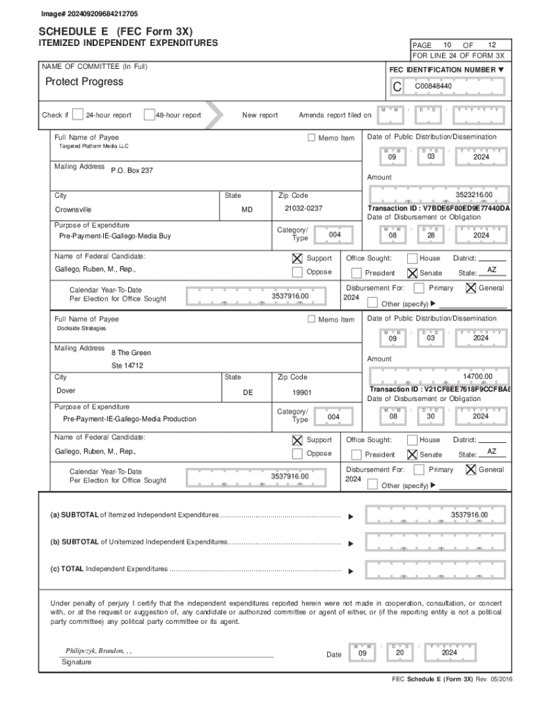 Get the free SCHEDULE E (FEC Form 3X) Protect Progress