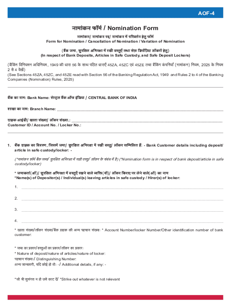 AOF4veeceebkeve Hee@ce& / Nomination Form veeceebkeve/ veeceebkeve j/ veeceebkeve ceW heefjJele&ve nsleg Hee@ce&Form for Nomination / Cancellation of Nomination / Variation of Nomination(yeQke pecee,