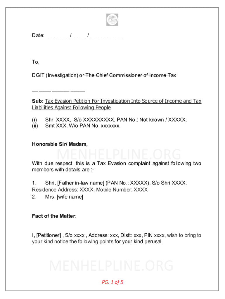 Sample Tax Evasion Petition Form: A Comprehensive Guide