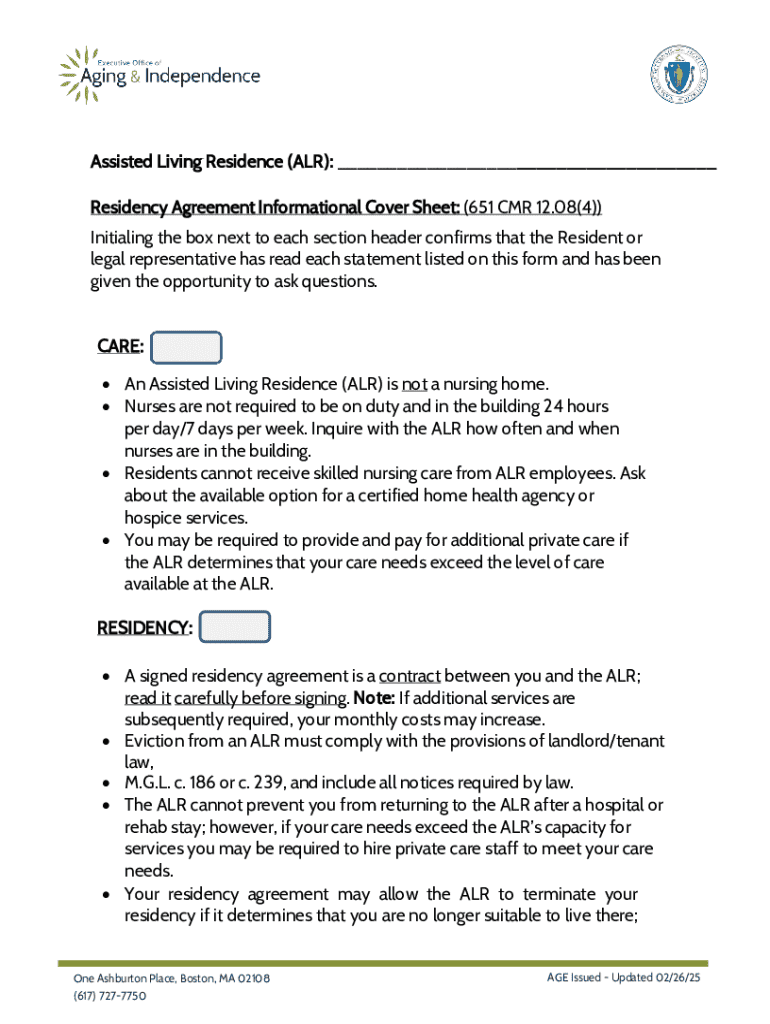 Get the free Residency Agreement Informational Cover Sheet: (651 CMR
