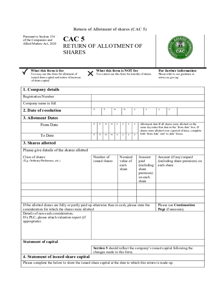 The return of allotment of shares is a formal document submitted by companies to notify the relevant authorities about the issuance of new shares. It serves as a critical component in maintaining transparency and regulatory compliance within the corporate structure. The main purpose of filing this return is to inform stakeholders about the changes in the company’s capital structure, thereby ensuring that newly allotted shares are officially recorded.