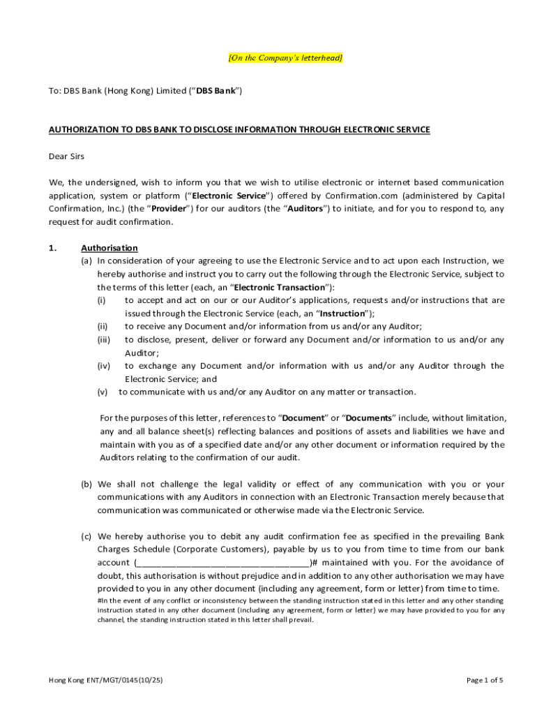 Get the free On the letterhead of the company (specimen) - DBS Bank