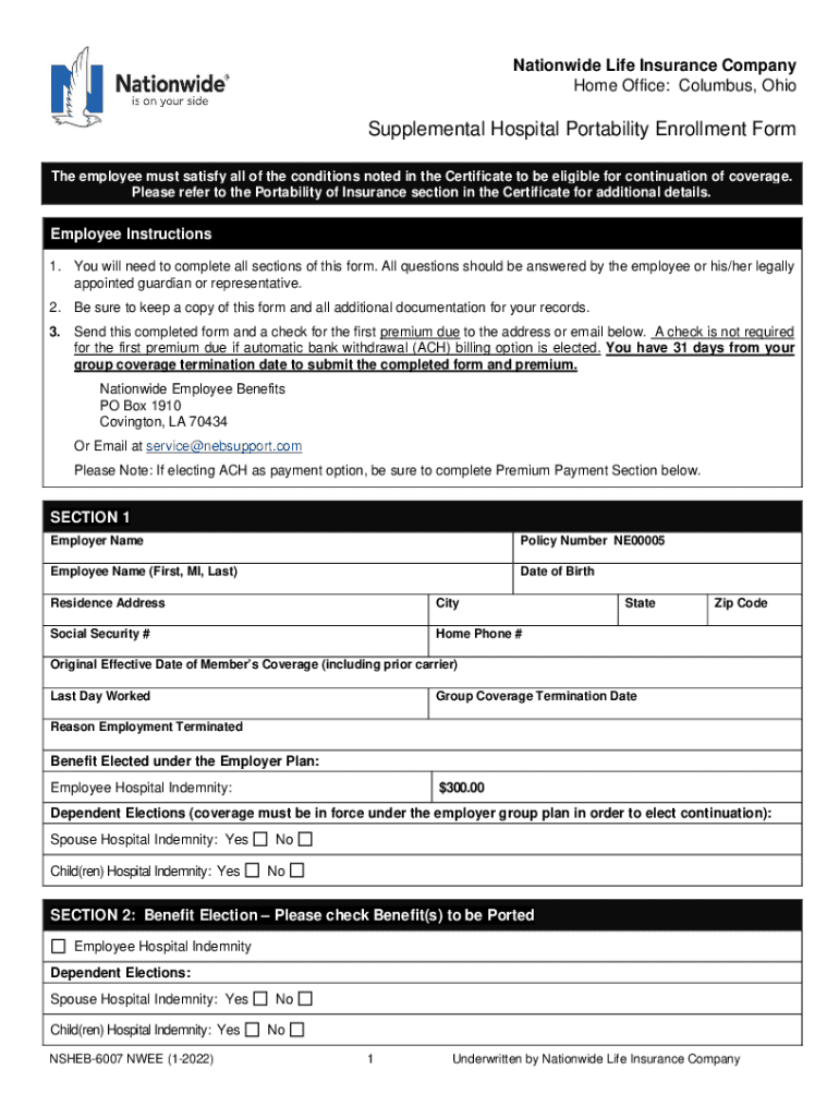 Get the free Supplemental Hospital Portability Enrollment Form - EBView