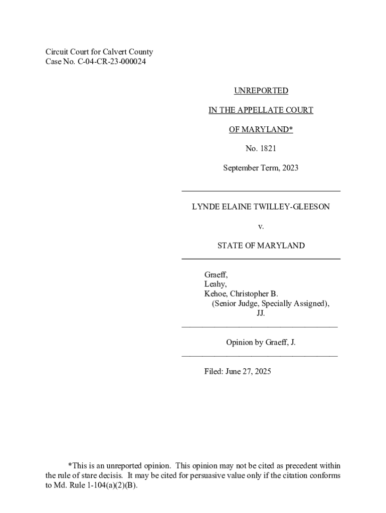 Get the free LYNDE ELAINE TWILLEY-GLEESON v. STATE OF ...