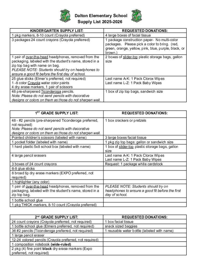 Get the free School Supplies - Dalton Elementary School