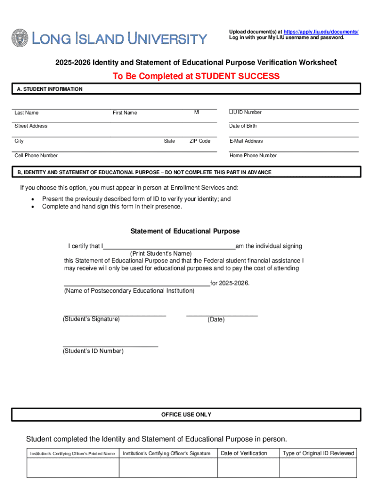 This form must be filled out by anyone intending to apply for admission to LIU, whether it’s a first-time student, a transfer, or a returning student. Each applicant needs to complete the My LIU C-M1 form to be considered for enrollment in their desired program.