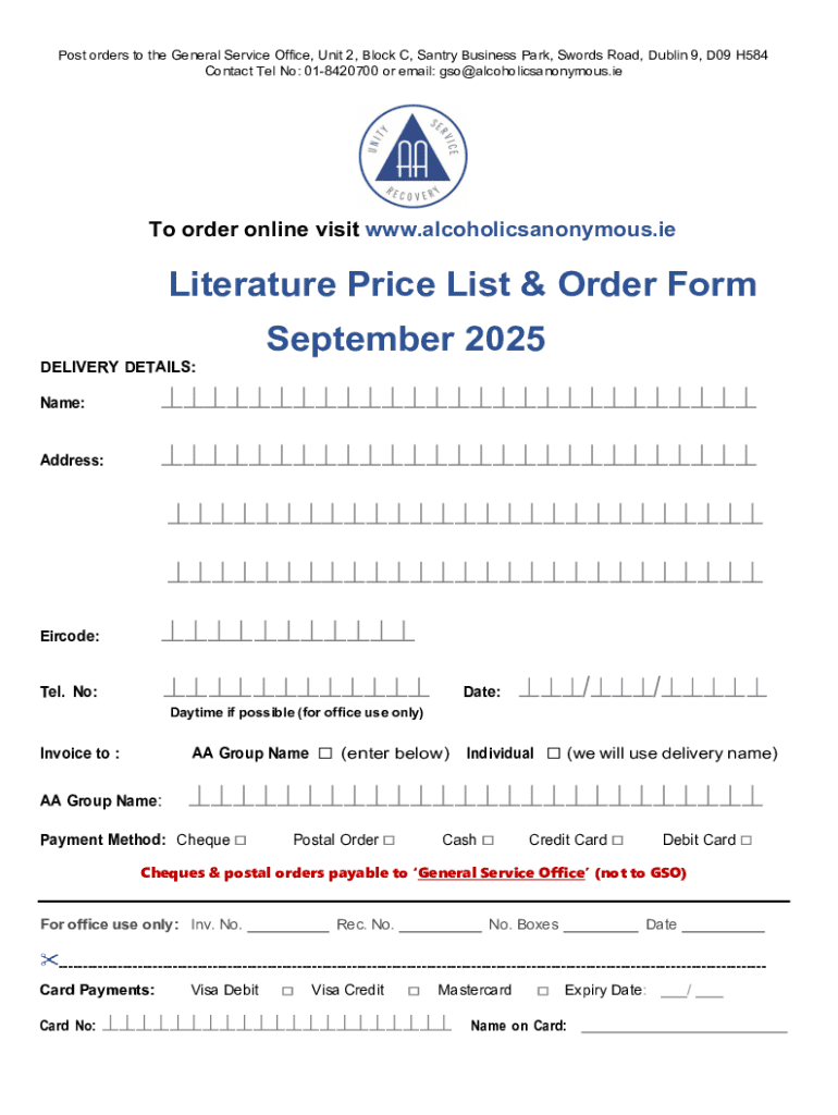 Get the free A.A. General Service Office Unit 2, Block C, Santry ...