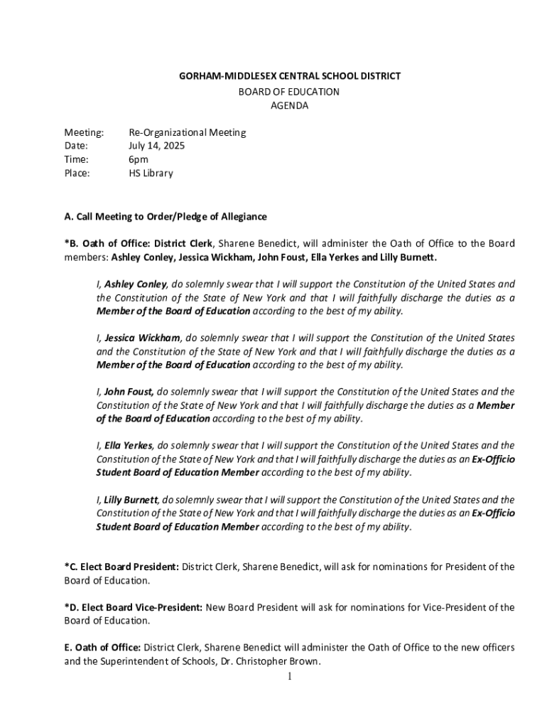 Get the free 1 GORHAM-MIDDLESEX CENTRAL SCHOOL DISTRICT BOARD ...