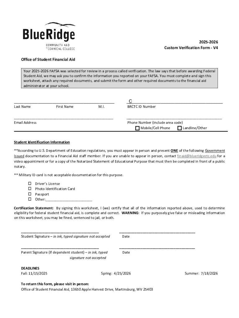 Get the free 2025-2026 Custom Verification Form - V4 Office of Student ...