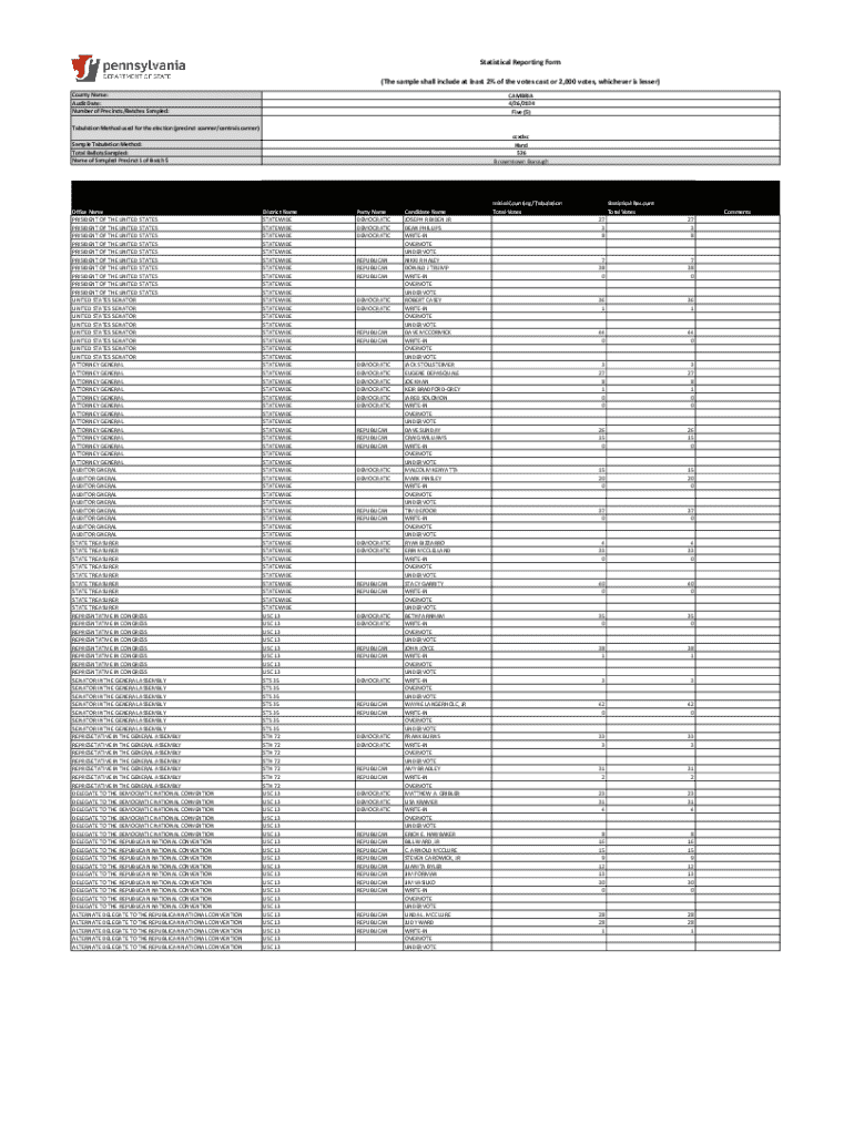 Get the free 2 percent statistical sample reporting form - Indiana County