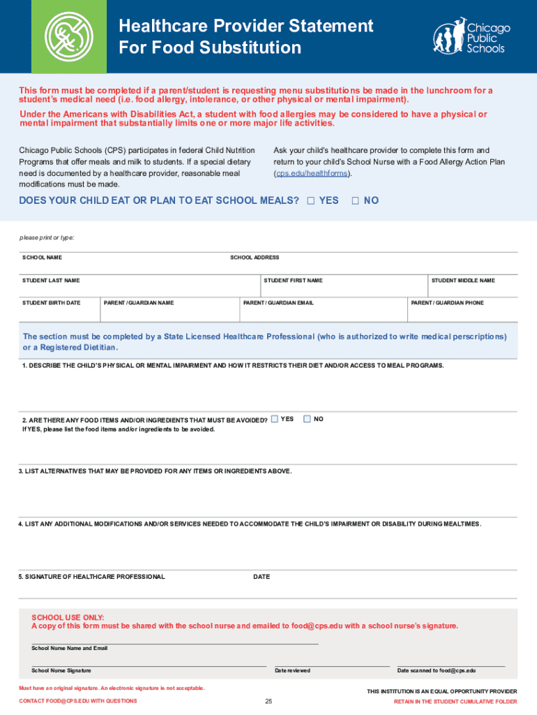 Completing a medical statement for meal modifications becomes essential when a student has a medical condition that impacts their dietary needs. This may include allergies, such as to nuts or gluten, chronic illnesses like diabetes, or developmental disorders requiring specific dietary considerations.