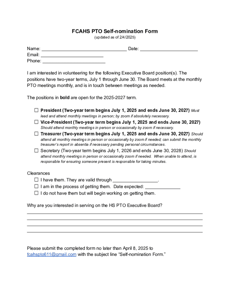 Nomination forms come in various types, tailored to specific scenarios and objectives. Understanding these types helps in selecting the right form for any situation.