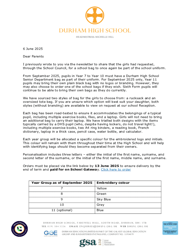 Get the free School-bag-letter-Senior-Department. ...