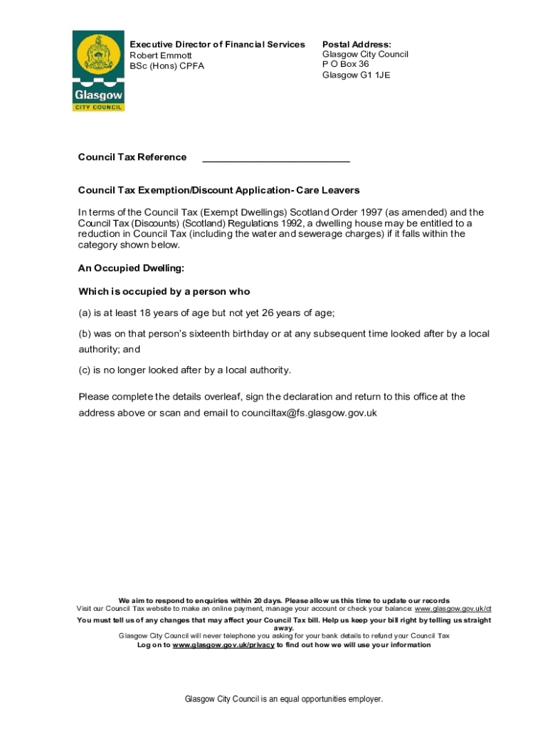 The purpose of this form is to ensure that individuals who are dedicating their time and resources to care for another person financially receive acknowledgment and relief from certain local taxation burdens. Council tax exemptions can make a significant difference, especially when care can be a full-time commitment.
