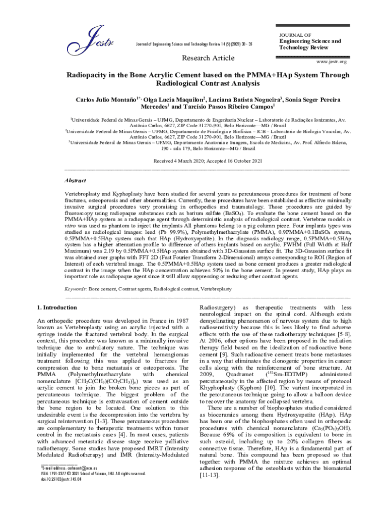 Get the free Properties of acrylic bone cement: state of the art review